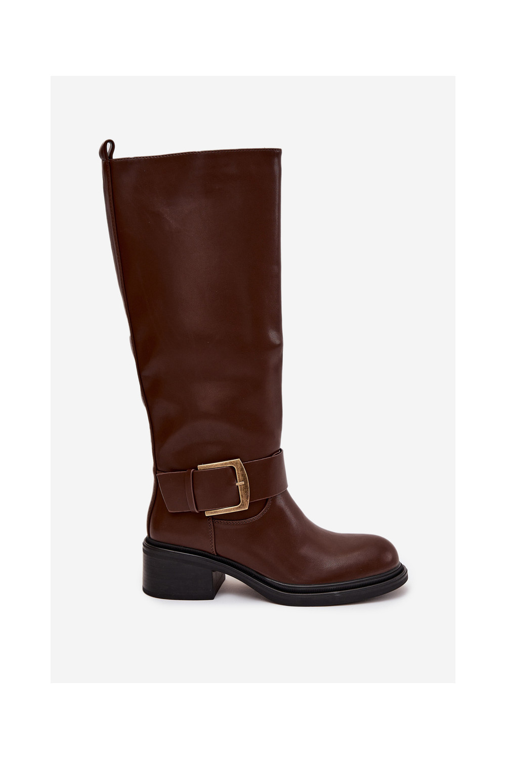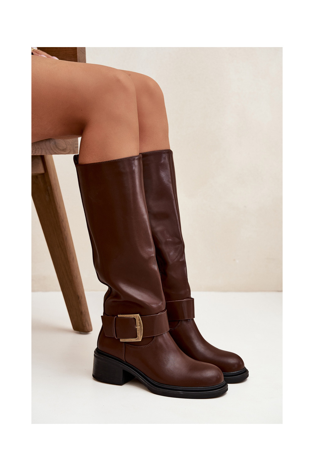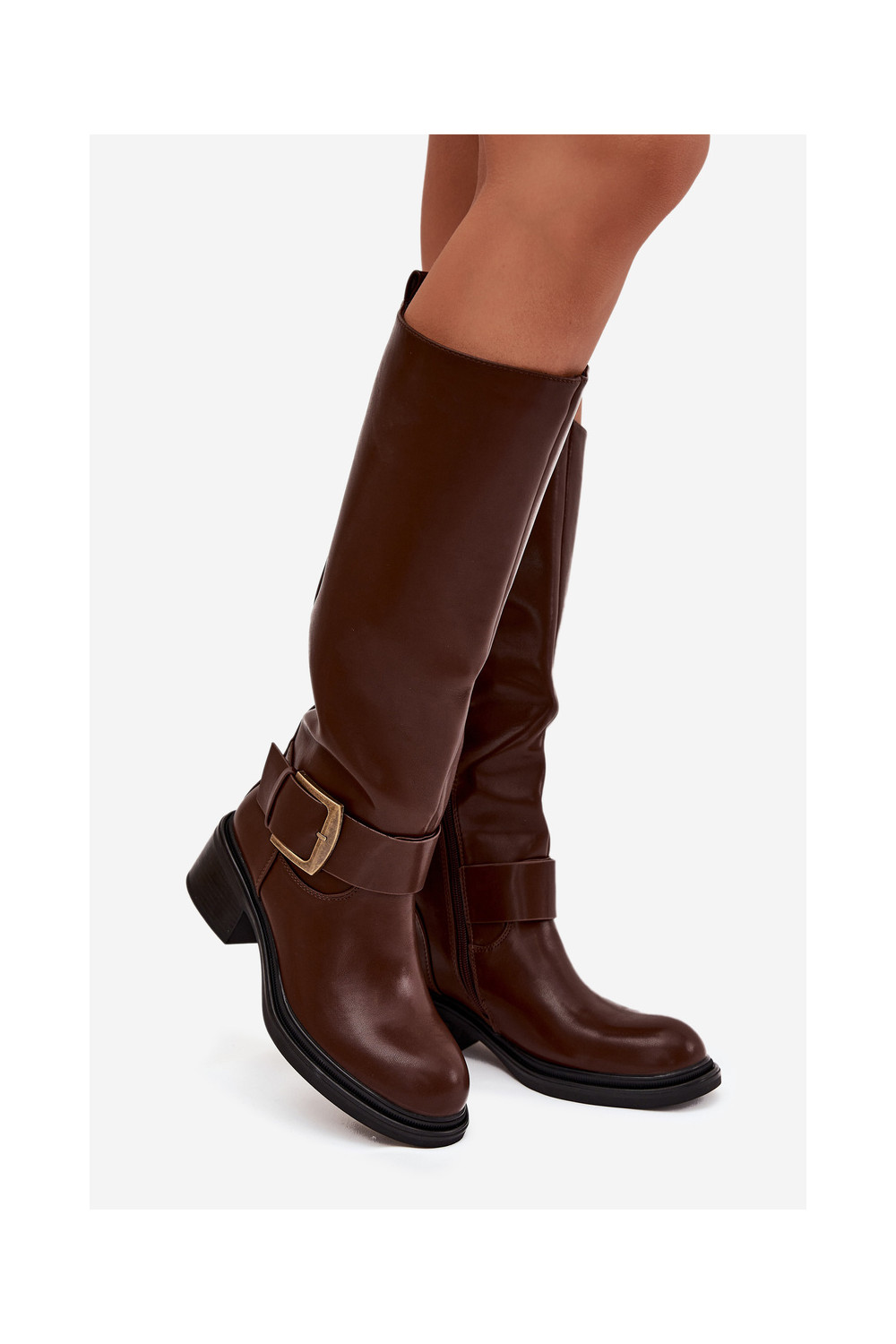 zateplené dámské dlouhé boty s přezkami Czekoladowe Raphaela