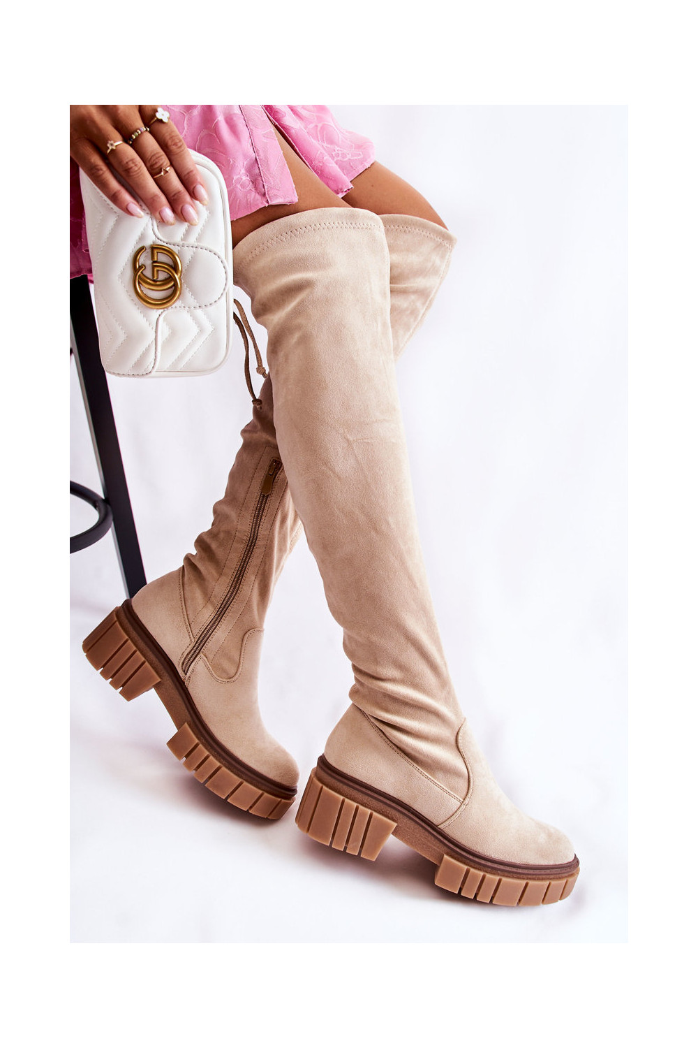 ze semiše dlouhé boty nad kolena slonová kost Cheera