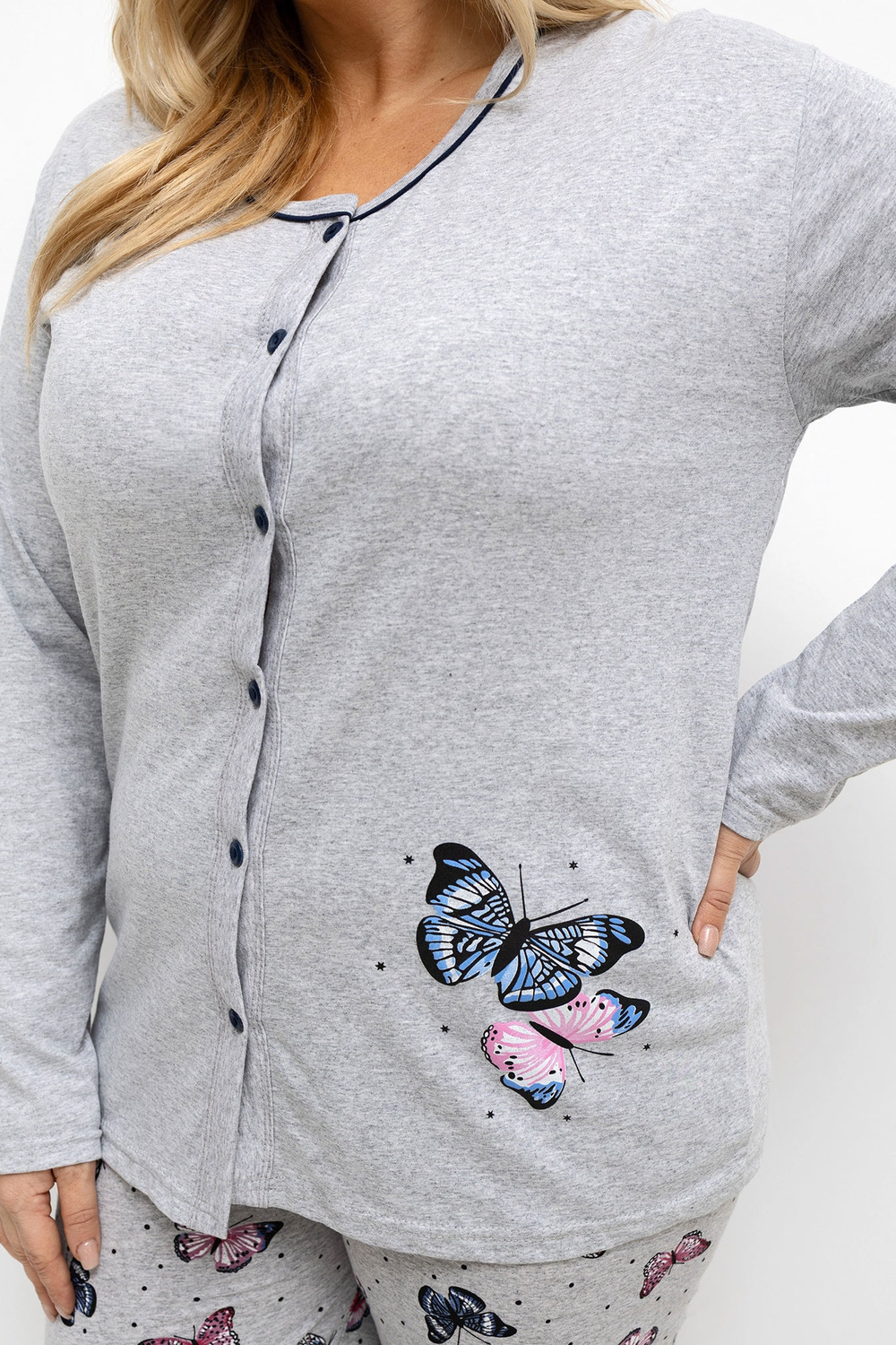 Rozměry pyžama ve velikosti XL měřené vleže: halenka: šířka pod pažemi - 55 cm, délka rukávu - 58 cm, celková délka - 70 cm, šířka dole - 55 cm, kalhoty: šířka pasu - 32 cm (vleže), šířka pasu - 71 cm (natažené), šířka boků - 59 cm, celková délka - 97 cm.
