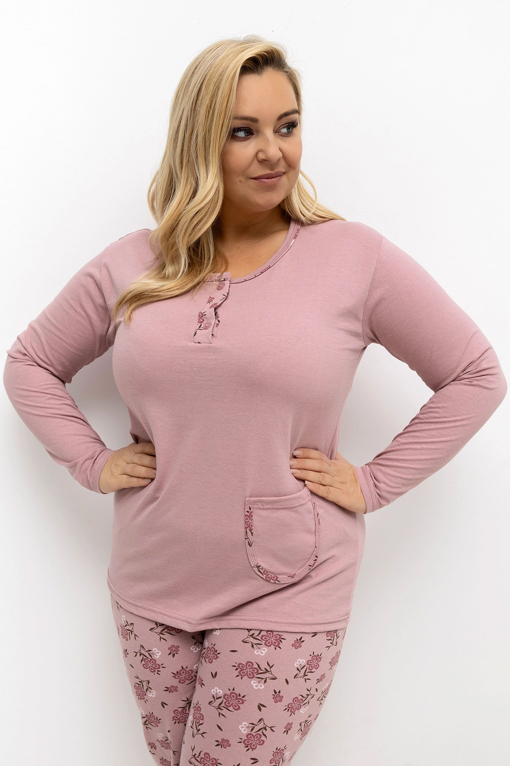 Rozměry pyžama ve velikosti XL měřené natažené: halenka: šířka pod pažemi – 56 cm, délka rukávu – 59 cm, celková délka – 69 cm, šířka dole – 55 cm; kalhoty: šířka pasu – 35 cm (natažené), šířka pasu – 69 cm (natažené), šířka boků – 60 cm, celková délka – 99 cm.