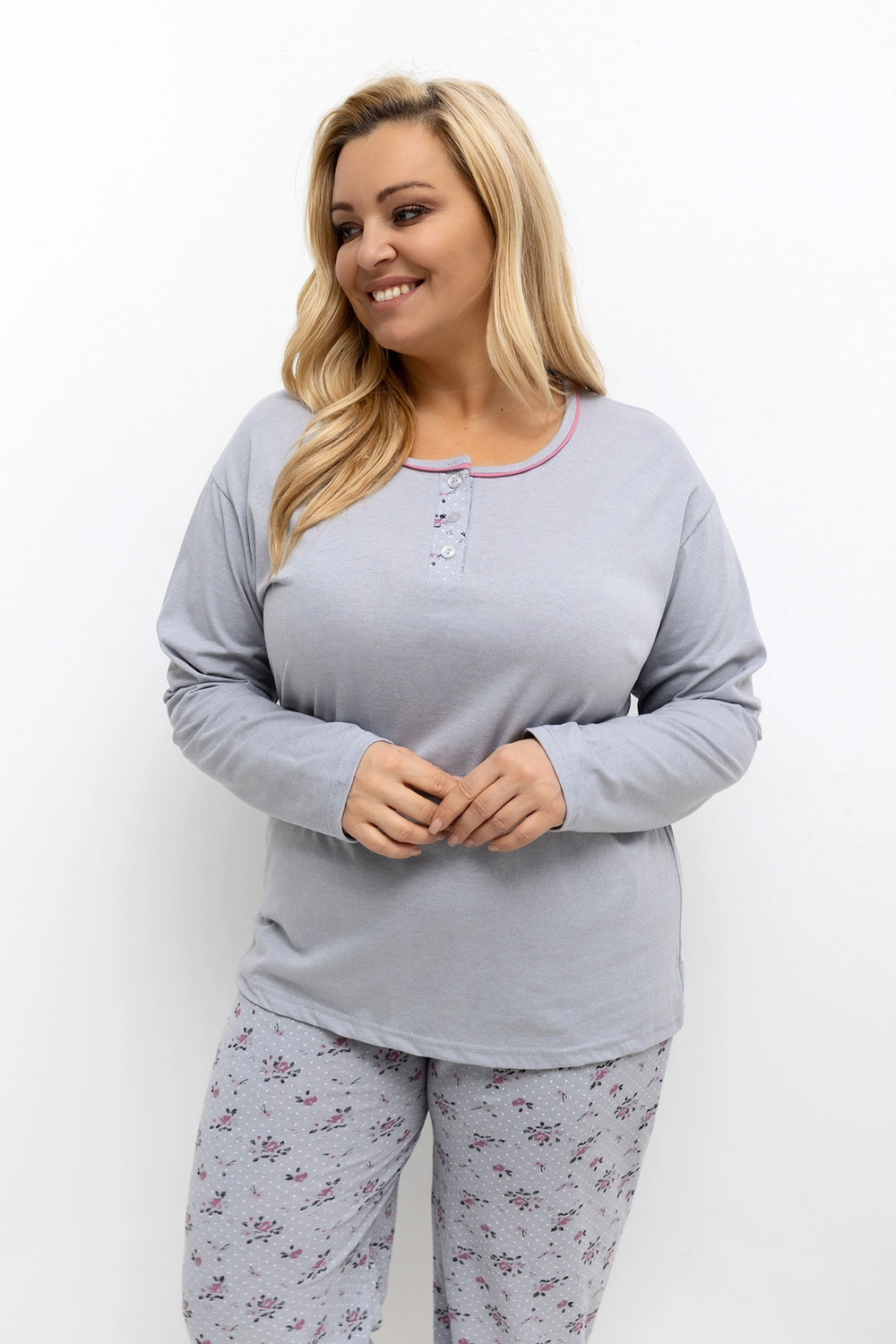 Rozměry pyžama ve velikosti XL, měřeno vleže: halenka: šířka pod pažemi – 57 cm, délka rukávu – 57 cm, celková délka – 70 cm, šířka dole – 55 cm, kalhoty: šířka pasu – 37 cm (vleže), šířka pasu – 84 cm (natažené), šířka boků – 67 cm, celková délka – 99 cm.