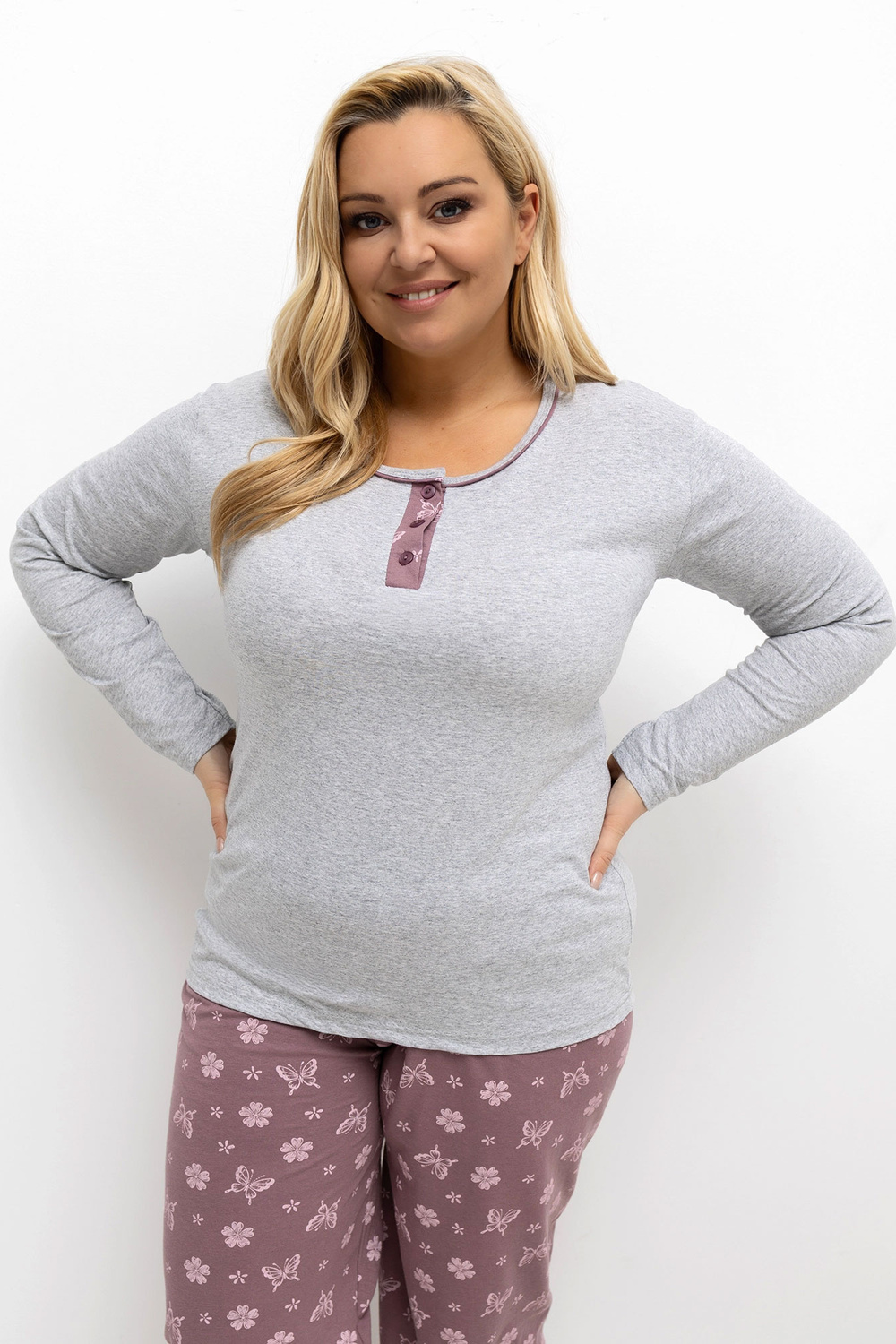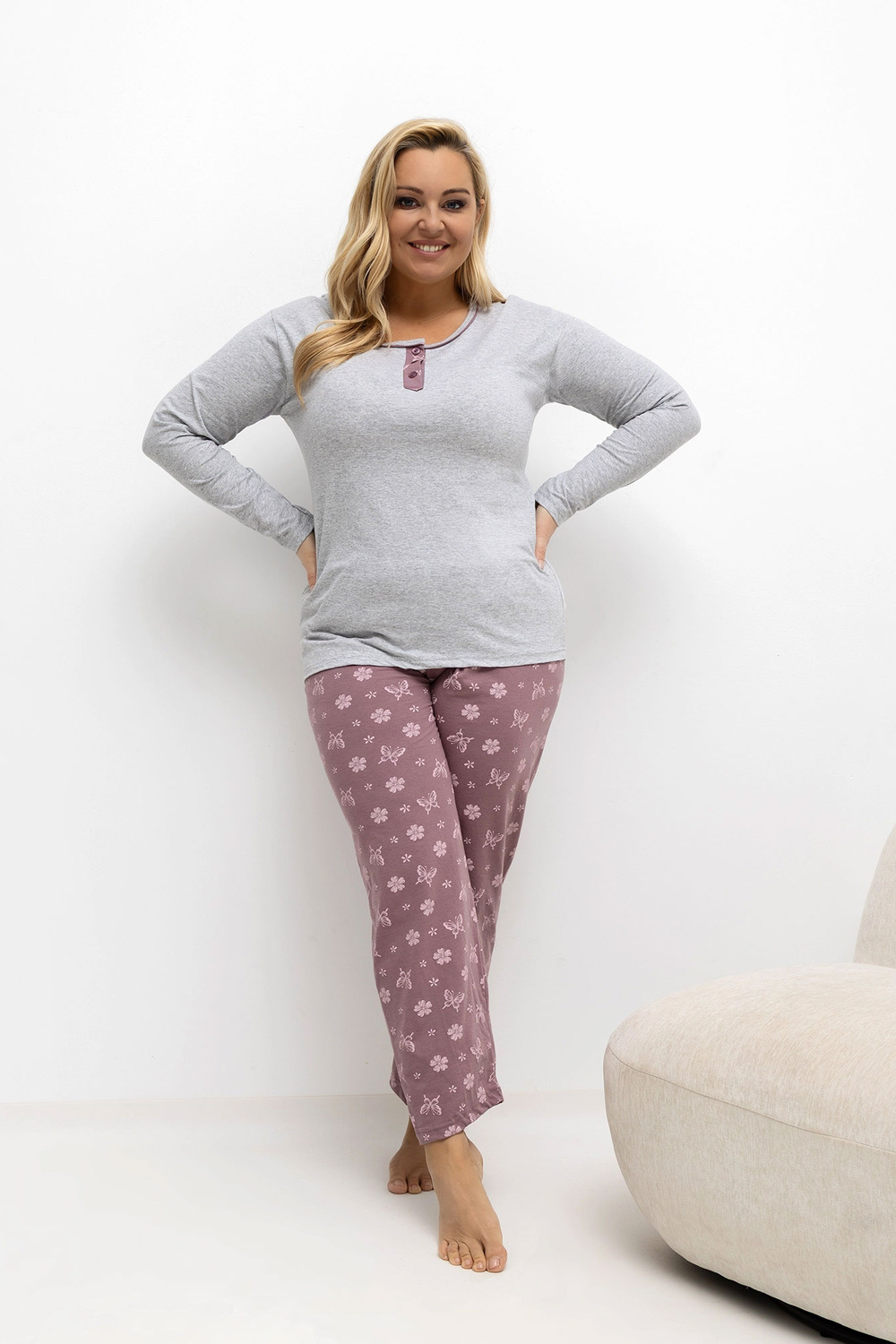 Rozměry pyžama pro velikost XL, měřeno vleže: halenka: šířka pod pažemi – 57 cm, délka rukávu – 58 cm, celková délka – 69 cm, šířka dole – 56 cm, kalhoty: šířka pasu – 33 cm (vleže), šířka pasu – 71 cm (natažené), šířka boků – 61 cm, celková délka – 96 cm.