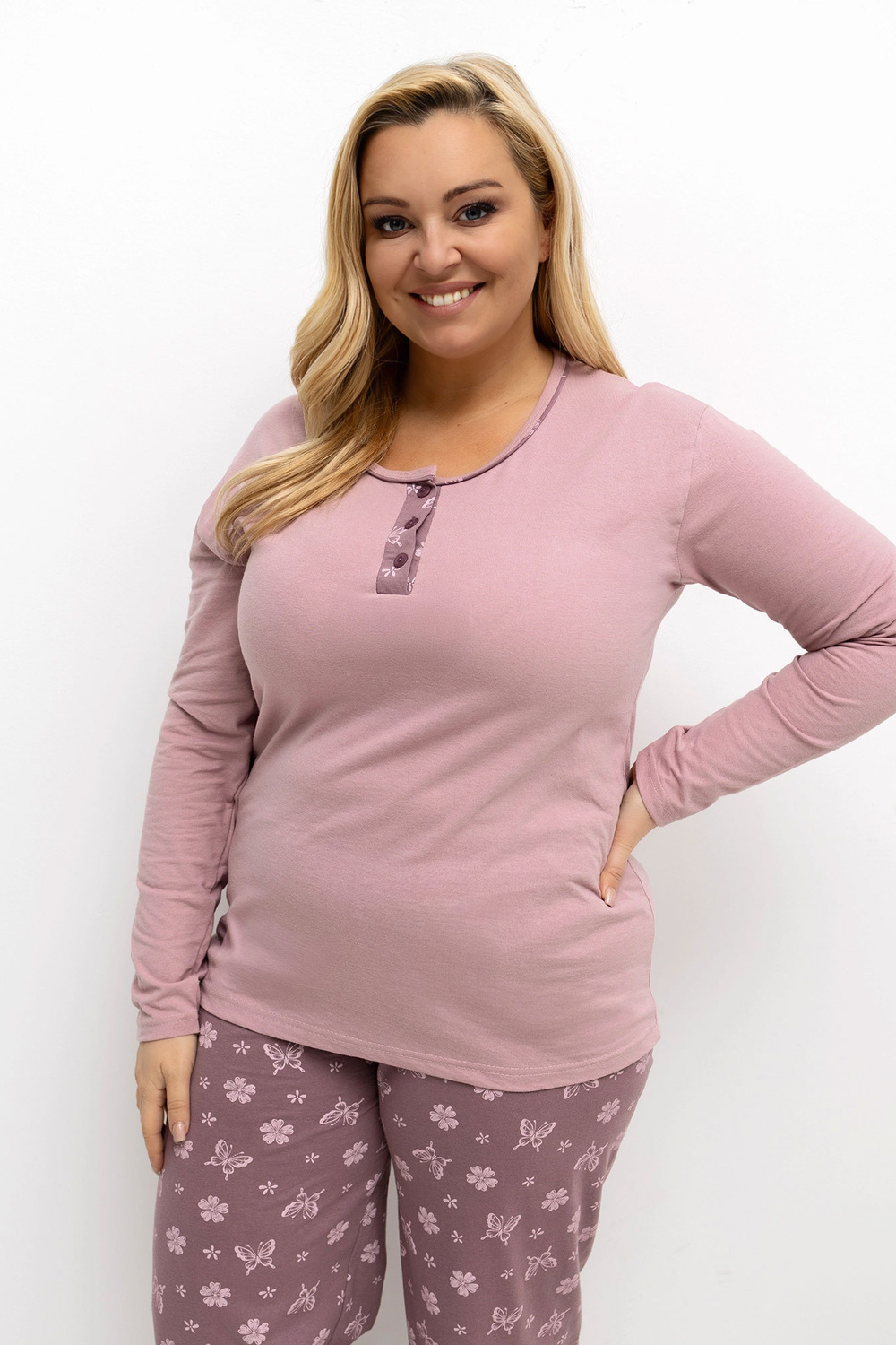 Rozměry pyžama ve velikosti XL, naměřené vleže: halenka: šířka pod pažemi – 57 cm, délka rukávu – 58 cm, celková délka – 69 cm, šířka dole – 56 cm, kalhoty: šířka pasu – 33 cm (vleže), šířka pasu – 71 cm (natažené), šířka boků – 61 cm, celková délka – 96 cm.