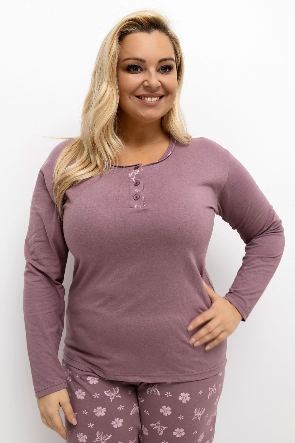 Rozměry pyžama ve velikosti XL měřené vleže: halenka: šířka pod pažemi – 57 cm, délka rukávu – 58 cm, celková délka – 69 cm, šířka dole – 56 cm, kalhoty: šířka pasu – 33 cm (vleže), šířka pasu – 71 cm (natažené), šířka boků – 61 cm, celková délka – 96 cm.