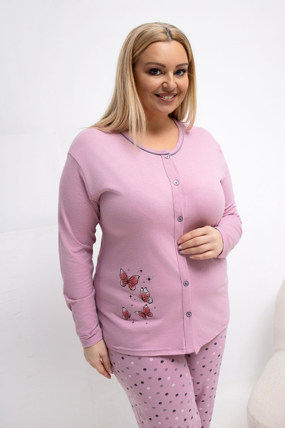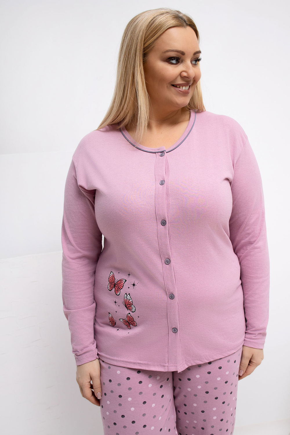 Rozměry pyžama ve velikosti XL, měřeno vleže: halenka: šířka pod pažemi - 54 cm, délka rukávu - 62 cm, celková délka - 74 cm, šířka dole - 52 cm, kalhoty: šířka pasu - 33 cm (v klidu), šířka pasu - 72 cm (natažené), šířka boků - 57 cm, celková délka - 99 cm.