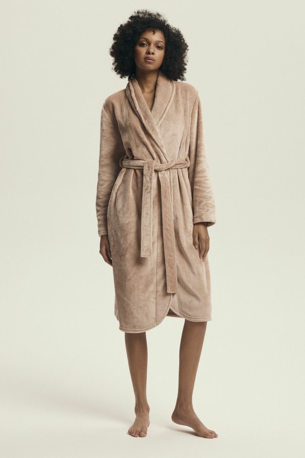 An elegant women's šatying gown made of shiny knit Materiál:, which gives the whole outfit a subtle and feminine character. The has a comfortable cut with practical pockets and a semi-circular bottom, which beautifully shapes the silhouette. The šatying gown has a tie at the waist, allowing it to be adjusted to the figure, and is packed in a plastic bag, perfect also as a stylish gift.